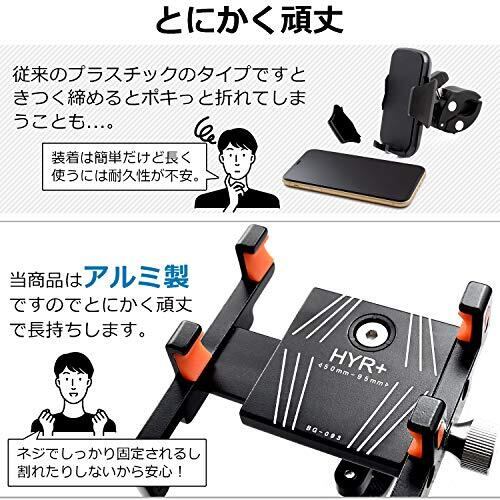 HYR+ アルミ製 バイク スマホ ホルダー 携帯ホルダ 合金 金属 製 マウント ステー 360度 回転 ジョイント 原付 オートバイ