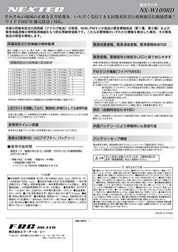エフ・アール・シー NEXTEC 防災ラジオ【 NX-W109RD(W) ホワイト 】選べる3色展開【防災同報無線受信】