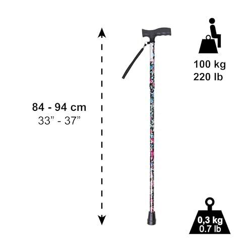 PEPE - 折りたたみ杖、杖 女性用、杖 女性用 おしゃれ、女性用ステッキ、ウォーキングスティック 高齢者、フラワープリント、高さ調節可能