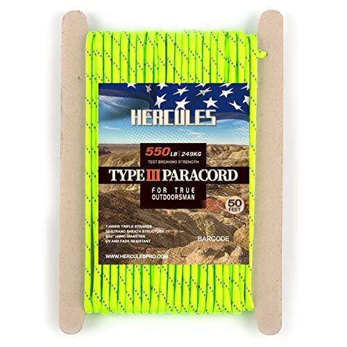 HERCULES パラコード 反射 タープ ロープ テント用ロープ ガイドロープ パラシュートコード 耐荷重250kg 7芯 反射蛍光緑 15m