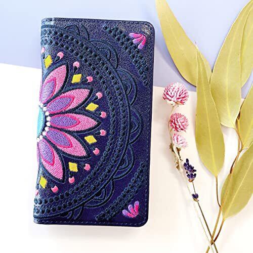 らくらくスマートフォンme F-42A F01L ケース 手帳型 エスニック 刺繍 ネイビー