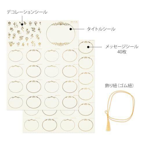 フォーマルな印象のギフト箱付き色紙 【サイズ】箱/H288×W258×D18mm 閉じた状態/H272×W242mm 開いた状態/H272×W490mm 【内容】シール/タイトル用1枚入 メッセージ記入用40枚入 飾り紐/長さ750mm 1枚ずつ切り離せるメッセージシール付き。簡単に寄書きのメッセージを集められます。