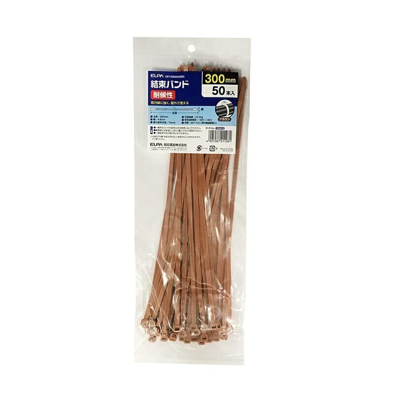 エルパ(ELPA) 結束バンド 300mm 50本入 ブラウン 引張強度/2.2kg カラー KBT-N300050(BR)