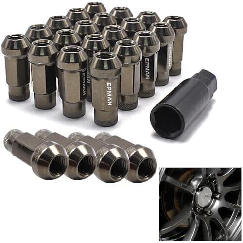 Wellvie classy ハイエース スチール ホイールナット M12×P1.5 ガンメタ 24個 貫通 レーシングナット ソケット付属 17HEX 48mm 6穴 クロムバナジウム ロング ラグナット レーシングナット ハイラックス ランドクルーザー デリカ パジェロ カスタム カスタムパーツ 外装パーツ ドレスアップ 車専用 カーパーツ カー用品(ガンメタリック)