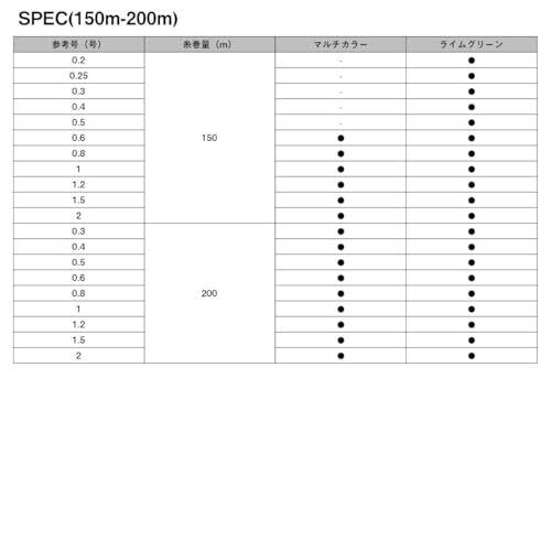 号数:0.3 強力:6.6lb (3kg) 糸巻量(m):150 カラー:ライムグリーン マーキング 素材:PE