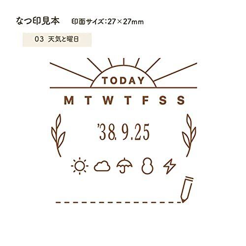 【印面】03 天気と曜日 【印面サイズ】27mm×27mm 【本体サイズ】軸径11mm×全長146mm【重量】約34g 【ご注意】別売のスタンプパッドと一緒にご使用ください。 【推奨スタンプパッド】シヤチハタいろもよう、いろづくり