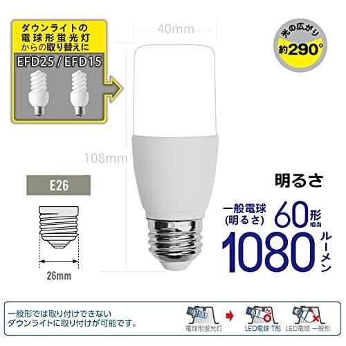 LED電球 T形タイプ 口金直径26mm 60w 100w形相当 電球色 1080ルーメン (7.2W) 一般電球・T形タイプ 密閉器具対応
