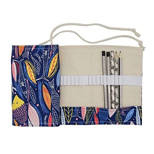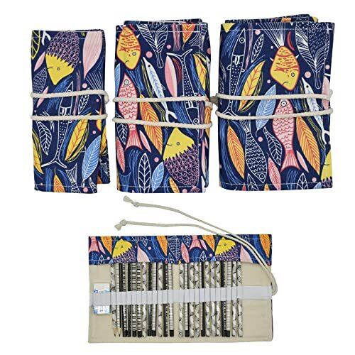 Maydahui 色鉛筆収納バッグ キャンバス ロールペンケース 大容量 画筆 色鉛筆ケース 文具収納 画材セット カラーペンケース 色鉛筆ホルダー 筆入れ 筆箱 子供学生 卒園 入園 プレゼント (魚/24穴)(鉛筆が含まない)