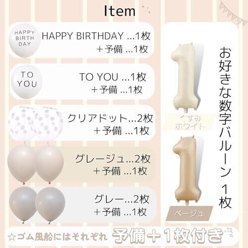 数字 バルーン ベージュ 大きい 誕生日 風船セット くすみ ナンバーバルーン アイボリー バースデー デコレーション (くすみホワイト(風船付), 7)