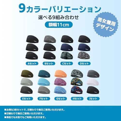 ヘアバンド メンズ 額幅11cm ヘッドバンド 汗止め スポーツ 幅広 薄型 バンダナ ヘアターバン ワイド 男女兼用 3枚セット