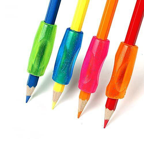4点セット 鉛筆キャップ 鉛筆ホルダー 鉛筆グリップ ペングリップ 鉛筆持ち方 鉛筆正しい持ち方 握り方矯正 姿勢補正 左右手兼用 柔らかい 筆圧 疲労を軽減 大人用 子供用 高齢者用(4色)
