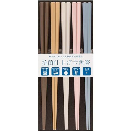 サンライフ 箸 食洗機対応 滑り止め加工 抗菌 23cm 5膳 セット 業務用 来客用 先角 彩り 六角 日本製 S-03660