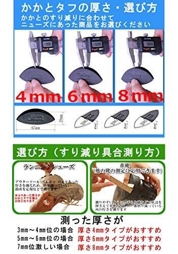 『かかとタフ』 4mmタイプトリプルセット、『かかとタフ』4mmタイプ3足分(6個)にかかとタフ専用接着剤が付いたとてもお得ななセット 注)本セットの接着剤のパッケージはプラスチックケースのみとなります。 シューズのかかと部分のすり減り修理に!ランニングシューズ、スニーカー、運動靴、ウォーキングシューズ、ビジネスシューズに対応。 優れた耐久性!「かかとタフ」は磨耗に強い特殊素材。シューズも補修で経済的。 簡単スピード補修!(約10分で修理完了)専用接着剤は、強力ハイスピードな接着剤。はがれ衝撃にも強い! 「かかとタフ」は信頼の日本製!