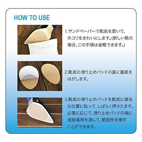 靴底滑り止め性能を高めて、滑りを 防ぎます、靴に静かな効果をもたらします。 男女シューズ共通の仕様。 包装に含まれているもの: 靴底滑り止めマット5 ペア(10 個)、 サンドペーパー 5 枚。 滑り止めデザイン、優れた粘着性、保護靴底。 使いやすい。