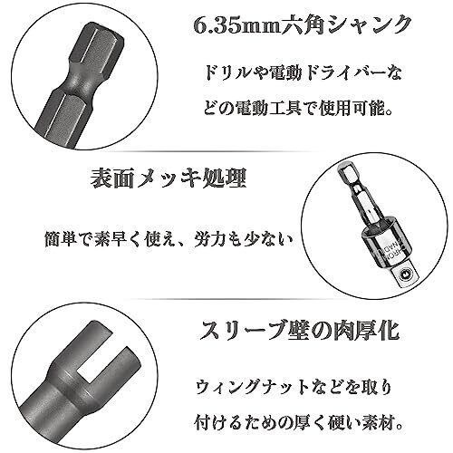 ソケット アダプター セット六角ドリル ビット翼スリーブ インパクト ドライバー ソケット インパクト ドリル ビット変換ソケット六角ドリル ビット セット 4pcs 1/4"/3/8"/1/2" 6.35 mm