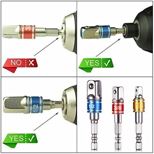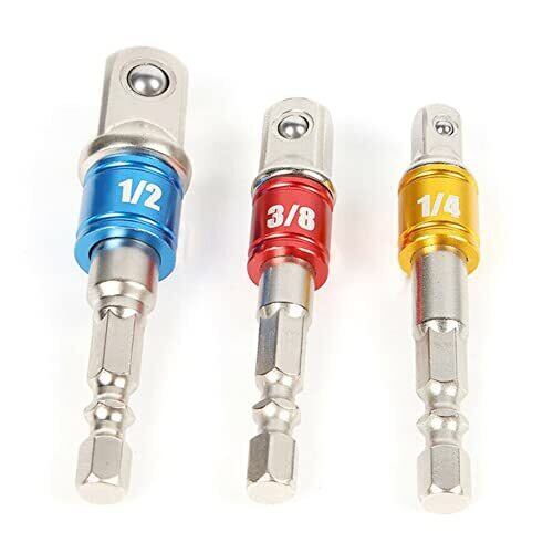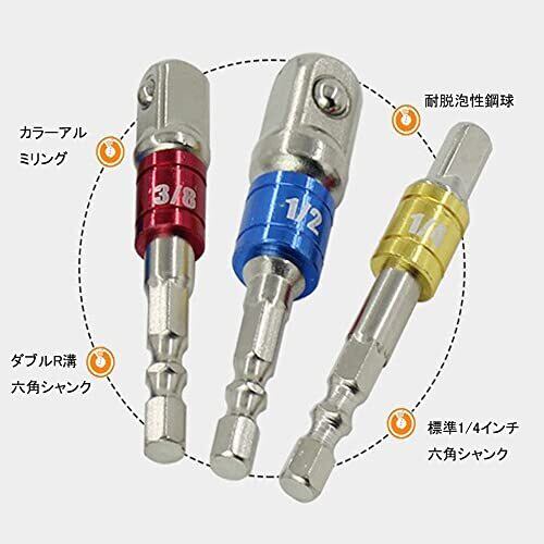 LIKENNY ソケットアダプターセット ソケットビット 電動ドリルソケット 六角ビット セット 差込角 1/4 (6.35mm) 3/8 (9.5mm) 1/2 (12.7mm) 六角ドリルビット インパクト ビット電動ドリル用 3本セット (シルバー)