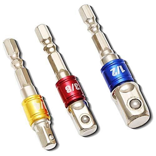 ソケットアダプターセット 3本組 差込角 6.35(1/4)·9.5(3/8)·12.7(1/2)mm用 六角軸 電動ドライバー ドリル ビット 9.5 12.7 変換 先端工具
