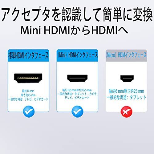 4 K高解像度:4 K 60 Hz 2160 p(UHD)、1440 p(QHD)、1080 P(HD)ビデオ解像度をサポートする。このhdmi mini hdmiケーブルを使うことで、なめらかで美しい4 K映像を楽しむことができます。 改良設計:mini hdmi hdmiケーブルは24 K金メッキプラグと三重シールドの組み合わせを採用し、信号の劣化を抑制し、外部干渉を防止し、信号伝送がより安定することを保証する。PVCと根元の折り曲げ改良の設計で、強靭で折れにくく、耐久性を高めています。 双方向転送:コネクタ形状はHDMI(タイプA・19ピン)-Mini HDMI(タイプC・19ピン)。購入前に、必ず使用する機器のコネクタ形状と一致するかを確認して購入してください。(注意:Micro HDMI/Micro USB/Lightning/Mini DPには対応していません) HDMI 2.0標準:Mini HDMIケーブルはHDR、イーサネット双方向転送、フルHD、3 DビデオARC(オーディオリターンチャネル)をサポートする。最大帯域幅18 Gbpsをサポートし、ビデオ信号とオーディオ信号を高速に伝送することができる。 対応機種:Mini HDMI to HDMIケーブルは、Mini HDMI端子を搭載したカメラ、タブレット、グラフィックスカードなどのAV機器をHDMI端子付きHDTV、ディスプレイ、プロジェクタなどのAV機器に接続することができる。