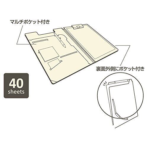 【収容量】コピー用紙40枚 【サイズ】A4 【型式】クリップファイル 【仕様】マルチポケット・外側ポケット付き 【寸法】24cm×1.3cm×34cm