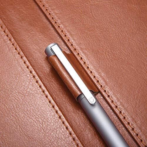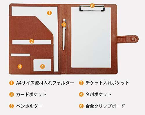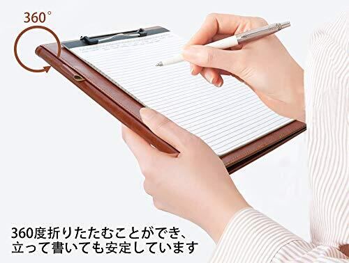 左側のポケットはカードや名刺、チケットなどの収納にピッタリです。真ん中にペン挿し1か所も用意しておきます。 素材:PUで高品質で高級感が出ています。 360度折りたたむことができ、立って書いても安定しています。A4サイズ(21*29.7cm)とB5サイズ(18.2*25.7cm)の用紙に適用されます。 寸法:25cm*32cm。 会議、インタビュー、芸術展示、引用、講義、一般的なビジネス用途に最適。