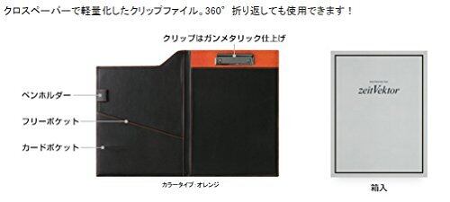 W23cm×H32.5cm×D1.4cm W230×H325×D14mm 素材:(表)クロスペーパー(裏)PVC クリップ:ガンメタリックメッキ ペンホルダー、フリーポケット、カードポケット付き