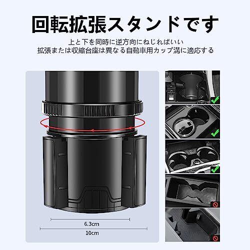 【サイズ調整可能】上部カップホルダーの幅は7.6cmから15cmまで調整可能で、飲み物だけでなく、大きなものも置くことができます。また、上部カップホルダーを左右に移動させることで、飲み物が届きやすい位置に調整でき、車内の省スペース化を実現します。 【傾かない&安定】上部のカップホルダーは伸縮性のある3つの爪のデザインを採用し、不安定な水カップを避け、ベースは防振パッドを採用し、製品と元の車のカップホルダーの衝突音を低減します。 【3-IN-1デザイン&360度回転ベース】ドリンクホルダーは360度自由に回転できます。回転ベースを調整することで、1つの車用カップホルダーが2つになります。2つのドリンクなどを同時に収納でき、場所を取りません。 底部に灰皿を内蔵、ステンレスライナーは難燃性で、運転しても安全、煙も自由に弾けます。 【省スペース】下部ベースの幅は6.3-10cm自由に調整でき、理想的なサイズはより多くの車に最適です。但し、車種はそれぞれ異なりますので、実車で計測されることをお勧めします。革新的な調整可能マルチブラケットデザインは、スペースを取らず、様々な飲み物や小物を収納できます。 【品質サービス】安心してご購入ください!この多機能カーカップホルダーはあなたの車を清潔で整理された状態に保ちます。ご満足いただけない場合は、お気軽にお問い合わせください。