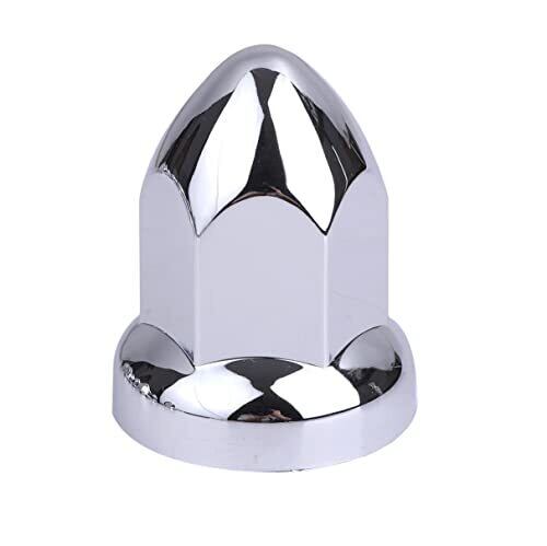 トンガリ ナットキャップ ISO規格 33mm H60 汎用 社外品になります。仕様:大型ISOホイール10穴用(JISホイール(ナット41mm)取り付け不可です。) 材質:ABS(クロームメッキ仕上げ) カラー:クロームメッキ サイズ(約):33mm 高さ55mm トラックのカスタムで肝心なのが足元のドレスアップです。メッキのホイールを装着していても、ナットが純正のままではガッカリです。メッキホイール交換に合わせて輝きのあるトンガリナットキャップでトータルでコーディネートすれば、さり気なく存在感をアピールできます。 取り付けは工具類を使うことなく、ホイールナットに手で押し込み被せるだけの簡単装着です。ホイール装飾品はお手軽ですがドレスアップ効果抜群で、トラック仲間の注目を集めます。材質も錆びないABS製ですので、磨けばキラリと輝き長期間お使い頂けます。 コストパフォーマンスが高く耐久性もありますので、購入しても満足頂けるオススメのトラックのドレスアップパーツです。 ※取扱説明書は付属しておりません。※ボルトが長い車両には、装着出来ない場合がありますのでご注意お願い致します。※ナットキャップを取り付けたまま、ホイールレンチ、インパクトレンチを使用されませんようお願い致します。