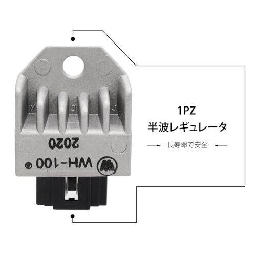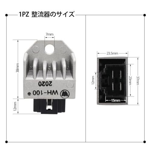 <対応車種>ホンダ: モンキー、ゴリラ、リード50(AF20/AF48)、リード90(HF05)、リード100(JF06)、 ジョルノAF24、スーパーディオAF27、スーパーディオSR(AF28)、ライブディオAF34/AF35、ジョーカー50(AF42)、トゥデイAF61、ディオAF62、エイプ50、エイプ100、リトルカブ50、スーパーカブ50、スーパーカブ90、ジャイロX、ジャイロキャノピー、マグナ50、NS-1、ベンリイ50 <パッケージ内>1 × レギュレーター、1 × 1PZ ボックス <品質保証>1 PZ製品はオリジナル製品の生産に従う。品質がいいので、取り付けが簡単です <アフターサービス>1年間保証あります(条件つき)。製品に品質上の問題があれば、どぞメールでご連絡ください。24時間内ご返信致します。不具合状況ご確認後返金か交換などの対応はできます。 <注意事項・保証対象外>※購入前に纯正品番か適合型番を確認せず不適合であった場合は保証対象外になります。※取り付け不備による故障、事故による故障は保証対象外になります。※使用中で発生した通常な磨耗や老化による1PZ製品の損傷は保証対象外になります。※故障不具合品の交換により発生した工賃や作業費用などに関しては保証対象外になりますのでご了承ください。