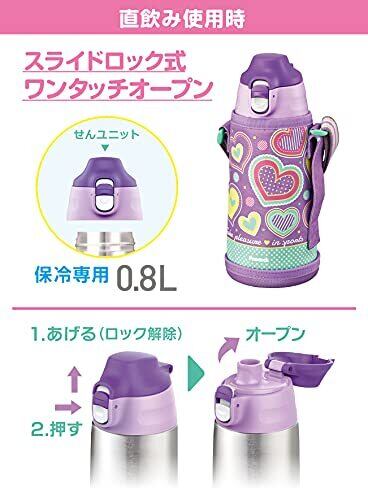 ピーコック魔法瓶工業(The-peacock) ピーコック 水筒 大容量 直飲み 保冷 800ml 2WAYボトル コップ飲み 保温 ワンタッチ ポーチ付き 保育園 幼稚園 小学生 運動会 ステンレス 魔法瓶 パープルハート ASG-W81 AVH