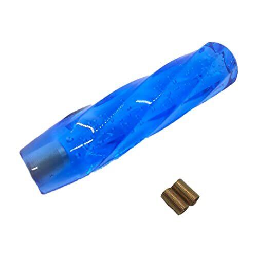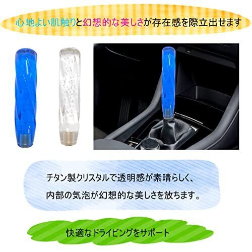 ツイスト型 クリスタルシフトノブ ブルー 汎用 200㎜【アダプター2個セット】 泡入り バブル (ブルー)