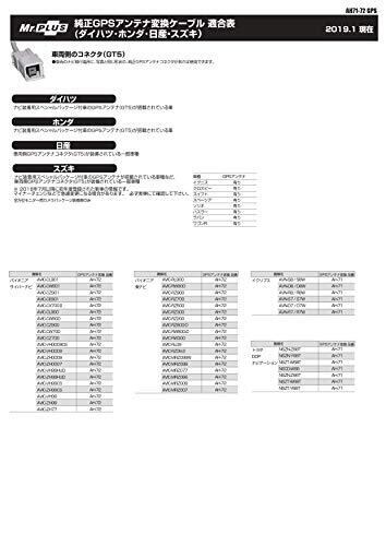 純正ナビ用に予め標準装備されたGPSアンテナを社外ナビに接続できるようにするための変換ケーブルです。 適合車両:ダイハツ ホンダ スズキ 日産 (車両側コネクタが GT5 タイプのものに使用できます。 ) 適合ナビゲーション:パイオニア (ナビ側コネクタが GT16 タイプのものに使用できます。 ) 構成部品: 変換ケーブル (1本)