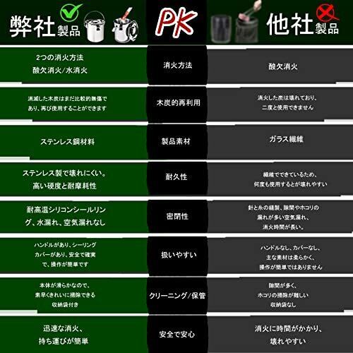 【秒速消火】火消し壺 ステンレス (2通りの消火方法,水消火&酸欠消火) 火消しつぼ 炭 薪 消火 バーベキュー 焚き火 消し炭の再利用可能 エコ 炭消し壺 火消し壺 コンパクト 炭入れ キャンプ 焚