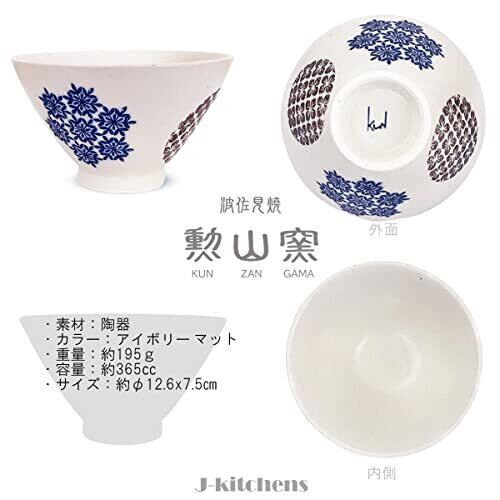 J-kitchens 勲山窯 茶碗 12.6cm 波佐見焼 日本製 丸紋 フラワー ブルー 大