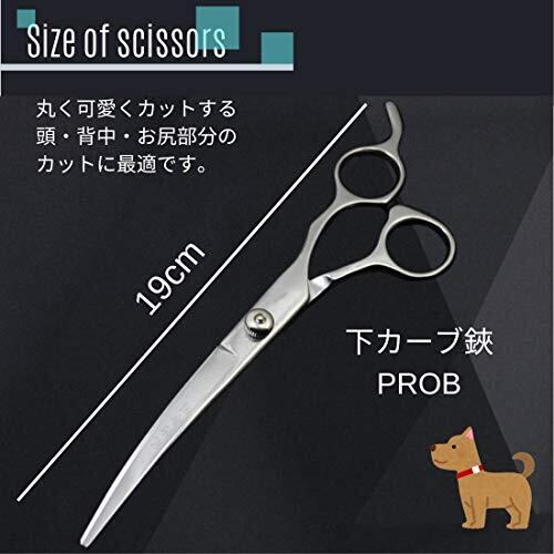 RICHAIR プロ仕様 ペット用 トリミング ハサミ カーブシザー 顔周り 足回り 目元 丸みを出しやすいカーブ型の刃 トリマー 犬 猫 ペット用 全長19cm (上カーブハサミ)