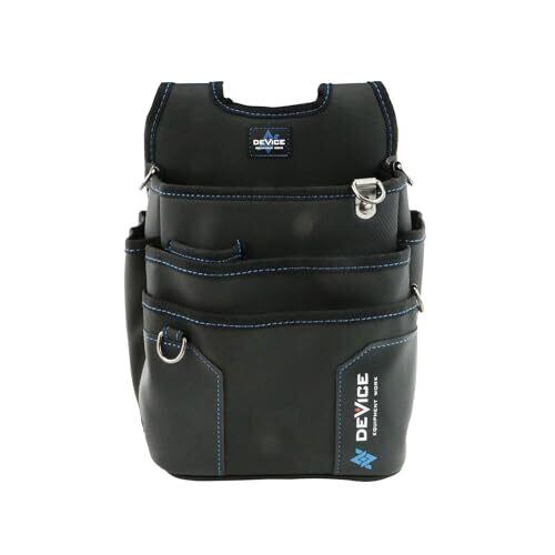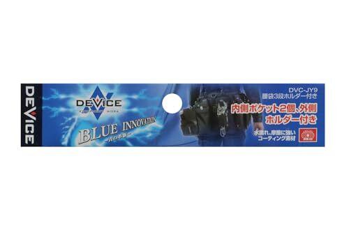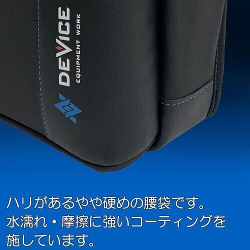 用途:工具の収納・携帯 特徴1:DEVICE青の革新、設備工事に携わる多くの職人さんたちの仕事を構成するDEVICEとなる腰廻り品を提案 特徴2:水濡れ・摩擦に強いコーティング素材、内側にポケットが2つ・外側にホルダー付き 対応ベルト幅:60mm 材質:ポリエステル