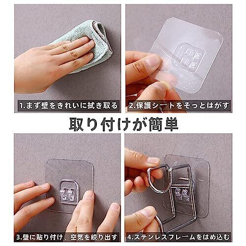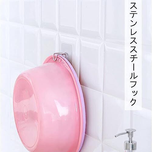 【垂直空間を活用す】床空間をより広く活用することができる。浴室の壁面を利用して 湯おけ 洗面器 の 水切りや 収納 にとっても 便利。いつも定位置に 収納 できるので、お風呂場 も スッキリ 整理 整頓 ができます。ステンレス製だから錆びにも強いアイテムです。 【使用方法】 貼りたい箇所の汚れ、水を拭き取り、フックの保護シールを剥します。しっかり壁に貼り付けます。吸盤 とは違い粘着タイプなので、浴室の多少凸凹した壁面にも貼り付ける事が出来ます。 【高い実用性】別途の工具が必要ない なめらかな面に付けて使用する多用途たらい掛け、洗面器の他にも、フックが付いているよな掃除用 ブラシ や スポンジ 、タオル なども 引っ掛ける事ができます。 【素材】透明または銀色の接着面とスタンレス環で構成され、シンプルできれいなデザインで構成されている。金属で作られ、耐久性を誇り、耐荷重も強い、安定感が高いです。光沢が出して錆びが出ない、物を傷つけない滑らかな手触りです。 【壁掛けタイプなので水切り効果もバッチリ】多くの壁に立てかけるタイプの風呂フタ用のフックとは異なり、壁掛けタイプなのでフタの接触部がぬめりにくく、汚れやカビを防止するため衛生的です。