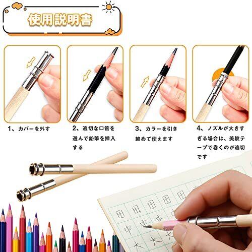 セット内容:鉛筆補助軸 5本セット 材質:金属ステンレス+木軸鉛筆本体 サイズ:長さ13cm 口径0.8cm(注:鉛筆を挿入する口のチューブが大きすぎて、緊張できない場合は使用できませんので、美紋テープで包んで使用することをお勧めします。 幅の大きさは状況に応じて調整できます。) 鉛筆が短くて描きにくいとき、鉛筆エクステンダーを鉛筆ホルダーに取り付けると、鉛筆の長さが伸びて描きやすくなり、鉛筆を効率よく使えて節約にもなります。日々の消耗に耐え、長期間の使用を可能にするよう作られています。 鉛筆ホルダー延長コードは、取り付けも使い方も簡単で、すでに短くて持ちにくい鉛筆に差し込むだけで、バランスが良くなり、使いやすくなります。短い鉛筆を長持ちさせる手間のかからない方法を探している人に最適なツールです。 持ち運び可能、コンパクトなサイズと軽量な構造で、鉛筆ホルダー延長コードは、移動中のアーティスト、学生、プロフェッショナルにとって理想的なアクセサリーです。六角形、丸形、三角形の鉛筆に適しています。 鉛筆エクステンダーとグリップエイドは、人間工学に基づいたデザインで、指への負担を軽減し、長時間の使用でも快適なグリップを実現することができる。ご自身の使用はもちろん、ご家族、ご友人、学生さんなどへのプチギフト、お土産、お祝い、プレゼントにも最適です。