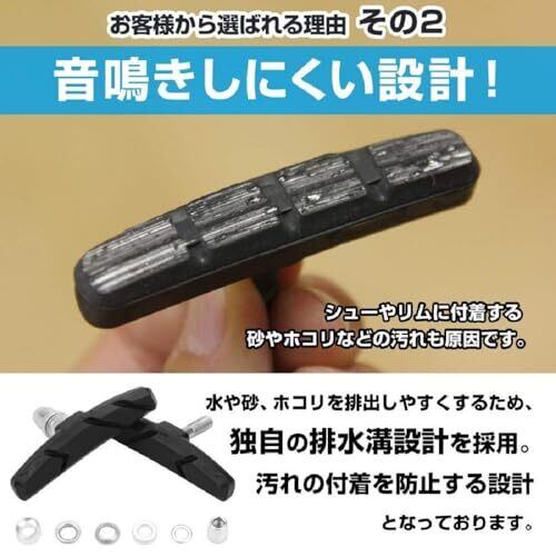 【品名】Vブレーキ、サイズ:70mm、重量:32g、材質:天然合成ゴム、アルミニウム。 【対応】マウンテンバイク、ロードバイク、折りたたみ自転車など、ほとんどのバイクに対応します。 【高品質+耐久性】無害な天然ゴム材料を採用し、摩擦・高温に強く、消音効果にも優れ、車輪(リム)を傷つけない仕様を実現。 【全天候対応】ブレーキ面に排水機能を備えております。全天候型ですので雨の日でもブレーキ性能は高く、安全に走行いただけます。 【パッケージ内容】取付工具(六角レンチ)+日本語取扱説明書付き。自転車 シマノ 前輪 後輪 ブレーキシュー ブレーキ シュー ぶれーきしゅー ぶれーき しゅー ゴム ごむ パッド ぱっど ブレーキパット ぶれーきぱっと ブレーキ パット ぱっと 部品 交換 折りたたみ自転車 折りたたみ 自転車 クロス バイク クロスバイク ロード バイク ロードバイク 自転車 アクセサリー あくせさりー 自転車 パーツ ぱーつ 自転車パーツ 自転車ぱーつ ブレーキ シュー ぶれーき しゅー