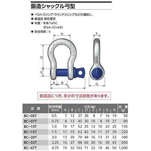 オーエッチ工業 鍛造シャックル 弓型 0.5t BC-05T
