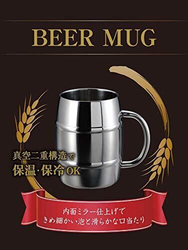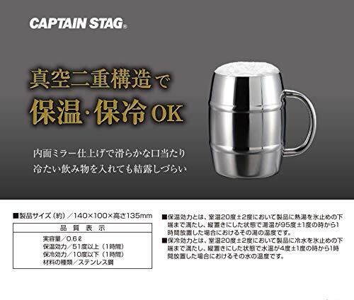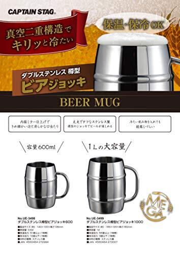 キャプテンスタッグ(CAPTAIN STAG) コップ マグカップ ビールジョッキ ビアジョッキ ダブルステンレス 真空二重構造 保温・保冷 樽型 ステンレス製 UE-3498/UE-3499