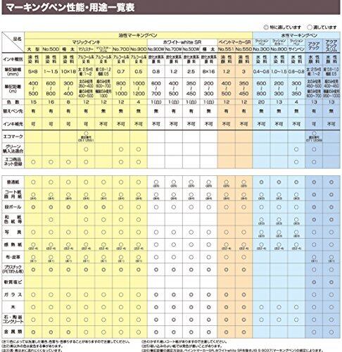 【両用】太書き・細書き 【インキ】水性顔料インキ 【仕様】にじみや裏写りがなく、紙に適したマーカー 【用途】紙・ガラス・金属・プラスチック・木材・陶器 【入数】10本入り