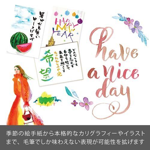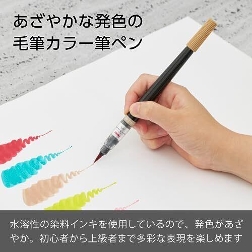 【特長】色鮮やかで柔らかな表現ができる水性カラー筆ペン 【色】ペールブラウン 【インキ】水性染料 【本体サイズ/重さ】幅40mm×奥行15mm×高さ230mm/16g 【材質】前軸=再生PP 後軸=再生PE 穂先=ナイロン繊維