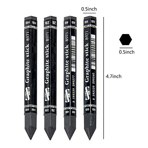 【4点セット内容】HB 2B 4B 6B 材質:黒鉛 この小さなアートセットは、初心者からプロまで、すべてのアーティストレベルに適しています。 【黒鉛の長所】鉛筆全体に高品質の黒鉛で作られ、手触りも良く、手が汚れにくいです。鉛筆は強くて耐久性があり、簡単に壊れることはありません。初心者や子どもでも使いやすく、子どもから大人まで幅広く使用可能なります。 【耐久性】鉛筆の芯は通常よりも厚く、直径12mm、非常に耐久性があります。太めの鉛筆の芯は、大面積の色を塗るのにも適しています。スケッチングペンシルはとても使いやすく、HB 2B 4B 6Bという4種類の硬度により、描き手の様々なニーズに応えます。 【豊富なバリエーション】硬度の違いにより、水彩画では明暗のコントラストをはっきりさせることができます。デッサン、スケッチ、レタリング、イラストレーション、製図と用途に応じてお使い下さい。 【様々な用途】デッサン、スケッチ、イラスト、絵画、ペイントに最適です。アーティスト、作家、学生、教師、そしてあなたの子供、友人、芸術と絵を愛する人への最高の贈り物です。
