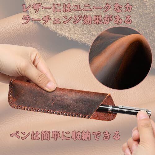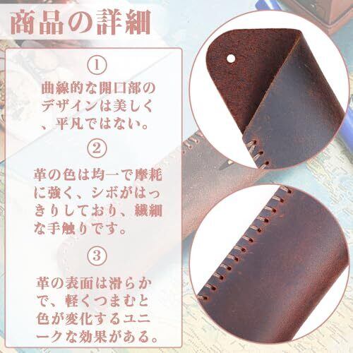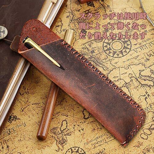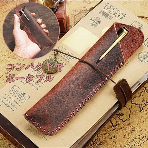 革製ペンケース 革製ペンケース ヴィンテージスタイル 手帳型 ペンプロテクター ペン収納 手縫いエッジ 約2本収納可能 コーヒー色