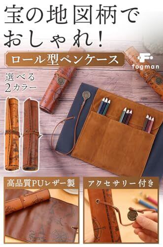 fogman ペンケース 筆箱 筆記用具入れ ロール型 巻き型 アンティーク レトロ おしゃれ PUレザー(ダークブラウン)