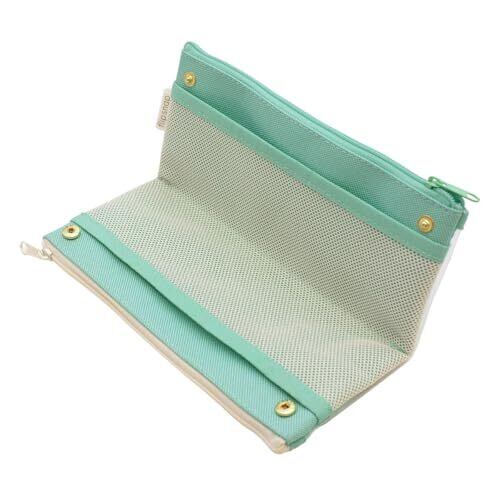 中身が見えて仕分けできるスリムなメッシュ素材のペンケース 仕分けして収納できるダブルファスナータイプ。内側のホックを外せば2つのメッシュポケットにも収納可能。 【カラー】グレー【本体サイズ】W200×H90×D20mm【重量】44g 【素材】ポリエステル
