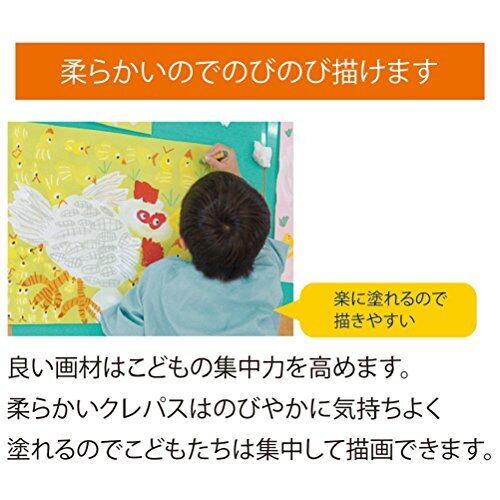 【特長1】のびのびと自由に描けるように作られたクレパス 【特長2】均一なやわらかさなので、混色・重色が自由にできる 【特長3】子どもたちの手に合わせた太さとやわらかさ/折れにくく、面塗りも線描きも自由自在 【サイズ】Φ11×71mm/本 【入数】10本入り