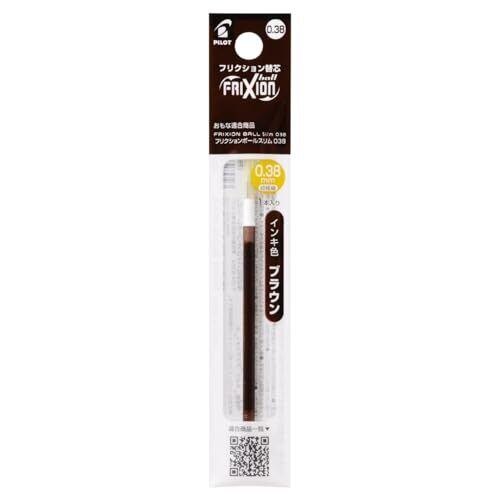 【適合本体】フリクションボール2・3スリム・4、フリクションボールスリムビズ、フリクションボールスリム038 【仕様】フリクションインキ 【インキ色】ブラウン 【ボール径】0.38mm 【サイズ】最大径φ3.6×87.5mm/本 【入数】10本