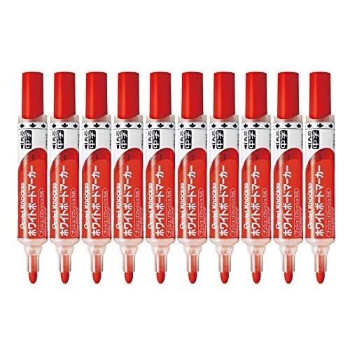 ぺんてる ホワイトボードマーカー ノックル 丸芯・中字 EMWLM-B 赤 10本