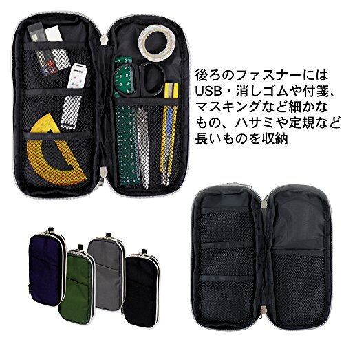 分類して収納しやすい、ダブルジップで見開きタイプのペンケース。 筆記具だけでなく、細かなものも整理が簡単! スリムタイプでバッグの中でかさばらない。 【カラー】ネイビー 【タイプ】ダブルラウンドジップ 【素材】ナイロン他 【サイズ】タテ23×ヨコ10×マチ5cm 【重量】80g